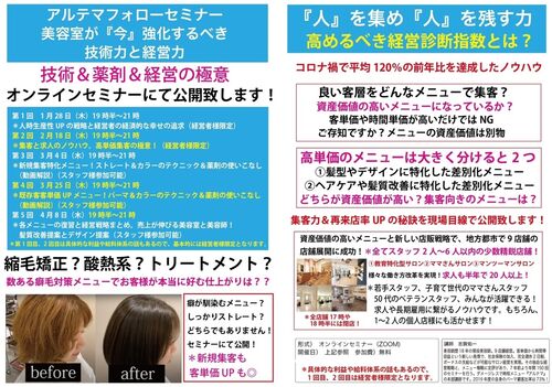 緊急事態再び!コロナに負けない対策とは? 年明けから、コロナが急増で首都圏では今晩にも緊急事態宣言が出されようとしています。当然、美容業にも影響があるはずです。そんな中、コロナ禍にあっても平均20%アップしている経営ノウハウ・技術・薬剤の秘…